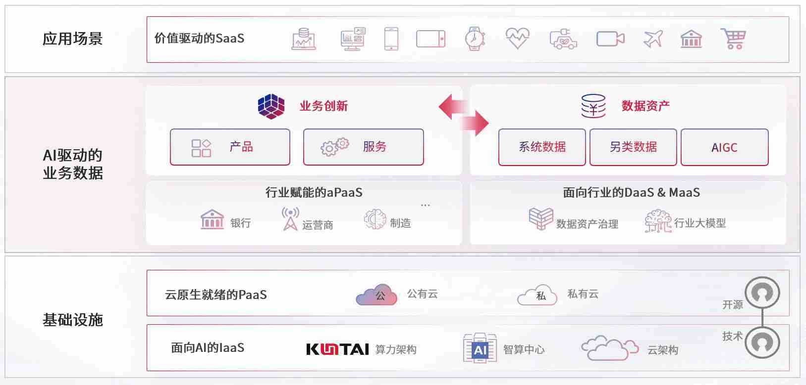 数字时代,,,,围绕企业数字化转型的关键要素,,,尊龙z6数码开创性的提出数云融合战略和技术体系框架,,着力在云原生、、、、数字原生、、、、AI原生和信创产业上架构产品和服务能力,,为处在不同数字化转型阶段的快消零售、、、汽车、、金融、、、医疗、、、、政企、、、教育、、、、运营商等行业客户提供泛在的敏捷IT能力和融合的数据驱动能力,,,,构建跨界融合创新的数字业务场景和新业务模式,,,,助力企业级客户建立面向未来的核心能力和竞争优势,,全面推动社会的数字化、、、智能化转型升级。。。